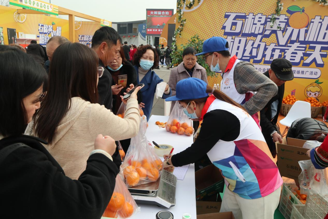 为切实助力乡村振兴,让饱满多汁的黄果柑走进蓉城,让更多的消费者品尝三月的美味,受石棉县委、县政府委托,石棉县新航娱乐农业发展有限责任公司积极响应,于3月4日—3月5日在成都市熊猫基地熊猫时空馆广场组织开展了“2023年度黄果柑春季上市发布会”系列活动。