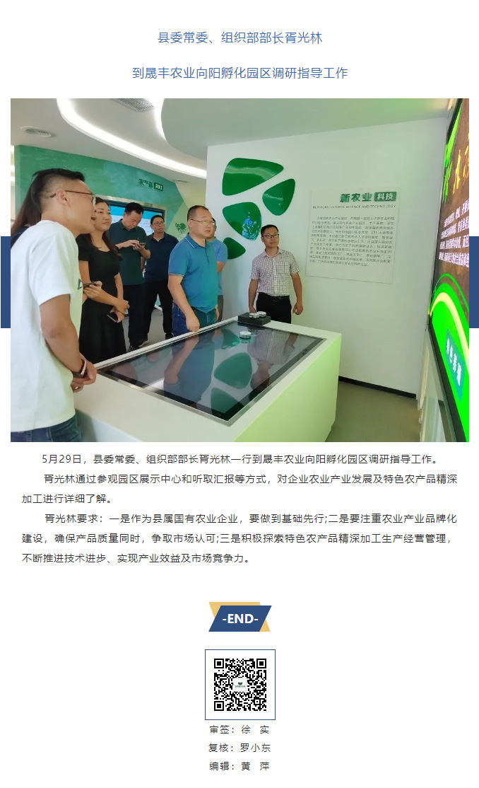 县委常委、组织部部长胥光林一行到新航娱乐农业向阳孵化园区调研指导工作
