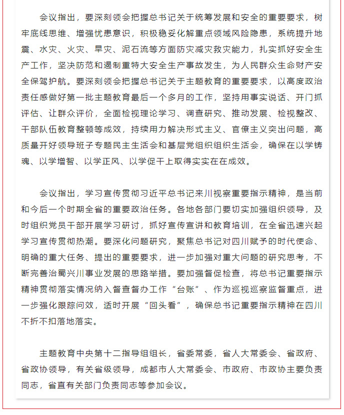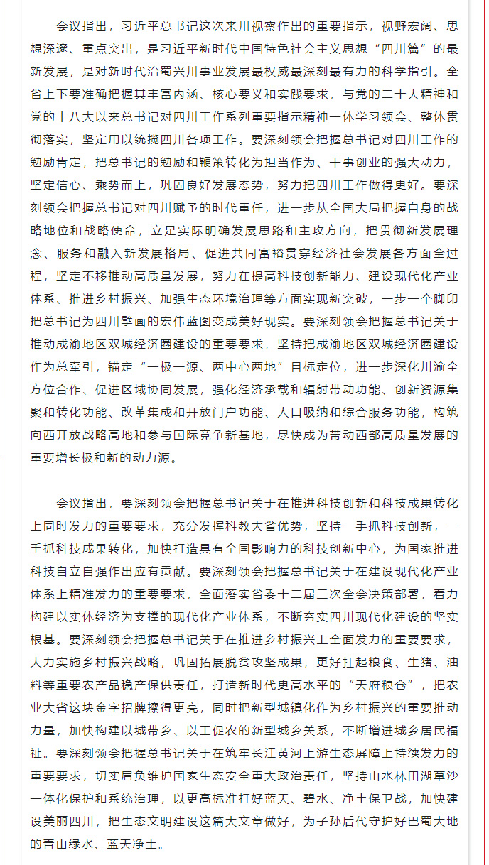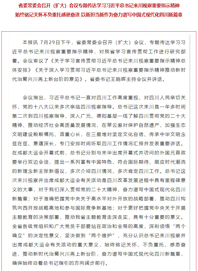省委常委会召开(扩大)会议专题传达学习习近平总书记来川视察重要指示精神