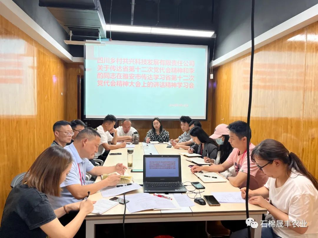 5 月 27 日至 5 月 30 日,中国共产党四川省第十二次代表大会在成都召开。6月13日,新航娱乐农业公司召开专题会议,传达学习省第十二次党代会精神。新航娱乐公司董事长郑烽同志、新航娱乐公司党支部书记徐实同志、新航娱乐公司副总经理杨志同志出席参会。