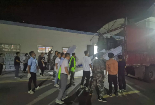 不分白昼搬运救灾物质,新航娱乐人随时待命