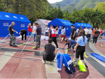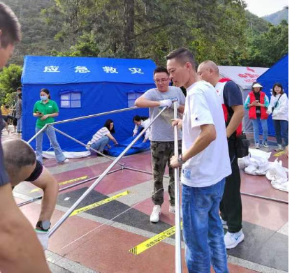 新航娱乐人自发到各临时安置点(各广场)搭帐篷